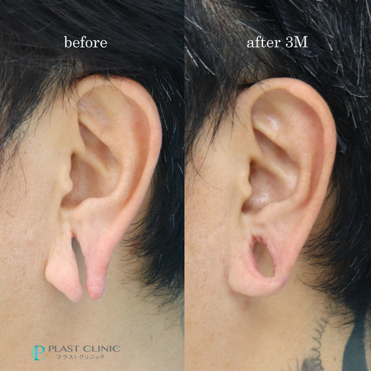 左右同等に耳垂を拡張していた場合、手術をした側のピアスホールは小さくなります。